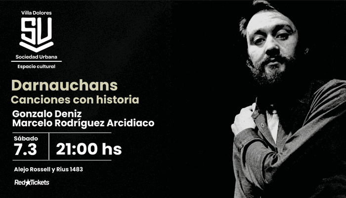 Gonzalo Deniz canta a Darnauchans, mientras que Marcelo Rodríguez Arcidiaco, autor del libro «Darnauchans: entre el cuervo y el ángel» nos compartirá las fascinantes historias detrás de sus canciones.