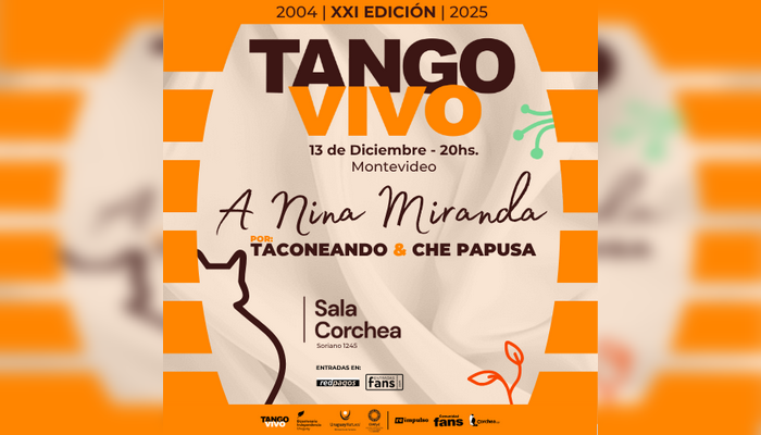 El sábado 13 de diciembre en la Sala Corchea (Soriano 1243 esq. Carlos Quijano) se presentarán el Cuarteto TACONEANDO y CHE PAPUSA Dúo para homenajear a NINA MIRANDA, de quien se cumplen 100 años de su nacimiento.