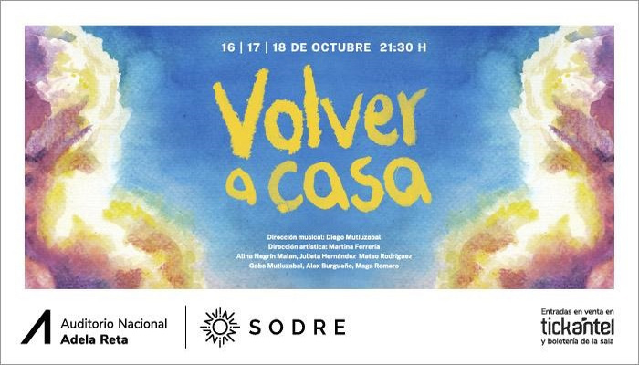 Volver a casa, es un espectáculo que reúne elementos de la danza, el teatro y la música. Su punto de partida son un conjunto de canciones compuestas por el músico uruguayo Diego Mutiuzabal e invita al público a escuchar, ver y participar de un viaje de retorno a lo humano.