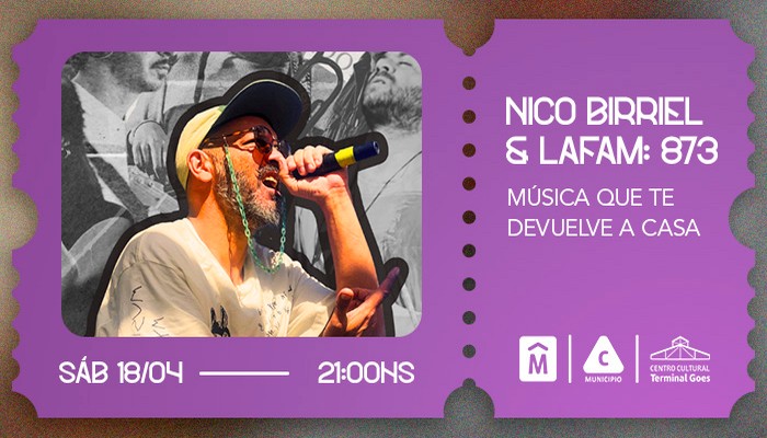 «873: Música que te devuelve a casa» Luego de una pausa de varios años lejos de los escenarios, Nico Birriel regresa oficialmente para presentar su álbum 873 y no lo hace solo. Una puesta en escena inédita para el hip hop local: Nico se presenta junto a LAFAM, una banda de 11 músicos en vivo (cuerdas, vientos, coros, percusión, teclas, bajo, guitarras, bandejas) que fusiona la crudeza del Boom bap con la elegancia del Neo-Soul. El show recorre la presentación del disco 873 (producido en Fauna Estudio) y adelantos de próximos trabajos. Y no se regresa en cualquier parte, sino en el mismo escenario donde en 2013 grabó el audio y dejó registrado el show en vivo «Asfalto en Flor» de su proyecto Bosques Encantados.