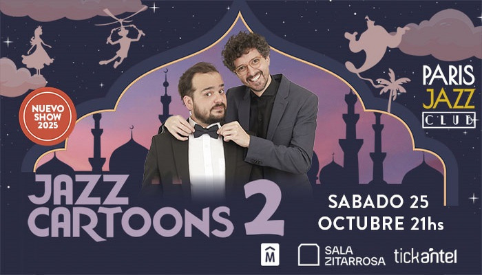 Una nueva aventura musical y humorística! con fantasías animadas de ayer, hoy y siempre. Después de cautivar a miles de espectadores desde 2019, Jazz Cartoons regresa en su versión renovada este 2025. Prepárate para un nuevo capítulo lleno de sorpresas, con un repertorio completamente actualizado que incluye las inolvidables melodías de clásicos como Prince Alí (Aladdín), Cruella de Vil (101 Dálmatas), When We’re Human (La Princesa y el Sapo), Zero to Hero (Hércules), entre otros, y las icónicas piezas instrumentales de Tom y Jerry, Los Picapiedras y Looney Tunes. En Jazz Cartoons 2, la nostalgia se mezcla con el humor, los sketches y la magia de la música en vivo, todo acompañado de imágenes que cobran vida en una gran pantalla. Un espectáculo que conecta generaciones, ideal para disfrutar con la familia, amigos o incluso solo, porque siempre es buen momento para revivir la magia de los dibujos animados! La compañía, dirigida por Francisco Villaveirán y Sebastián Misuraca, transportará al público a un mundo de fantasía con mucho humor y buen gusto. Este espectáculo es una experiencia única que se reinventa para seguir sorprendiendo, el público será transportado a un universo donde los dibujos animados se mezclan con el mejor jazz entre otros ritmos.