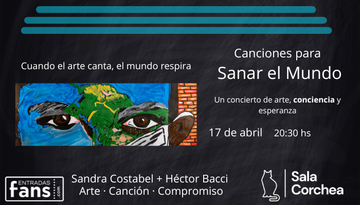 Canciones para sanar el mundo es un concierto íntimo que reúne música, palabra e imagen en una propuesta artística que invita a la reflexión y al encuentro. La cantautora Sandra Costabel y el guitarrista Héctor…