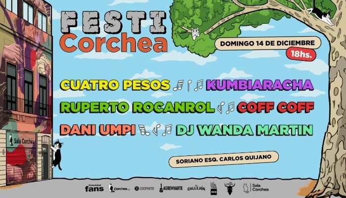 El barrio vuelve a vestirse de fiesta. El domingo 14 de diciembre, Cooparte y Sala Corchea presentan una nueva edición del Festi Corchea, el clásico cierre de año que reúne música, comunidad y celebración al aire libre.